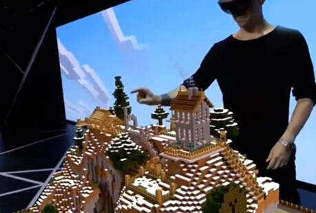 但还有一条真正令微软粉丝振奋的消息:该公司在台上演示了用HoloLens增强现实眼罩玩《我的世界》(Minecraft)的效果。