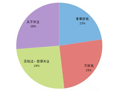 调投票数据显示,玩过并喜欢国产动画改编手游的玩家占比23%,感觉手游并不好玩的玩家占比25%,没玩过此类手游的玩家占比52%,其中听说过这类手游的玩家占比26%,另外26%玩家则从没关注过这类手游。国产动画片的手游改编太过跟风,强调剧情创新的同时,没能在玩法上做出更颠覆的改变,这样的改编没能抓住老玩家的情怀,也不太可能俘虏新玩家的热情。