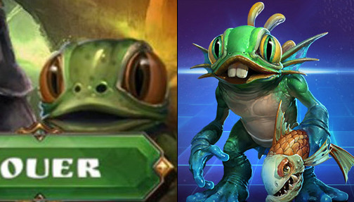 山寨了萨尔自然不必多说,仔细的玩家也许会发现右下角的“小怪物”看着十分眼熟,但又叫不上名字,但相信看了下图你已经认出来了,将小鱼人“拔牙”又“拔背鳍”,确实有点残忍。