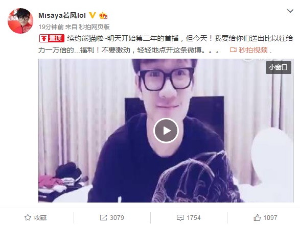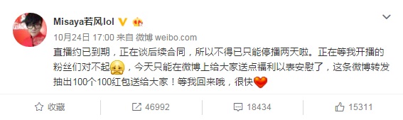 但合同谈判仅用了3天便尘埃落定。若风通过微博发文表示已与熊猫成功续约。且据可靠消息称,若风这次的续约堪称天价合同,比肩MISS在虎牙的年薪!